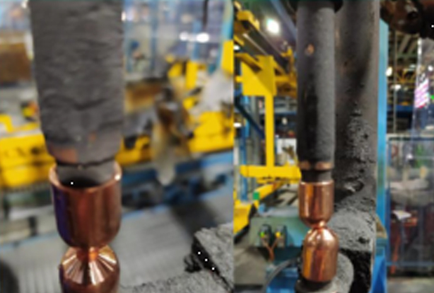 首先,焊枪电极帽在Y轴上调整成对准状态,使用涡流线圈(传感器)读取状态
